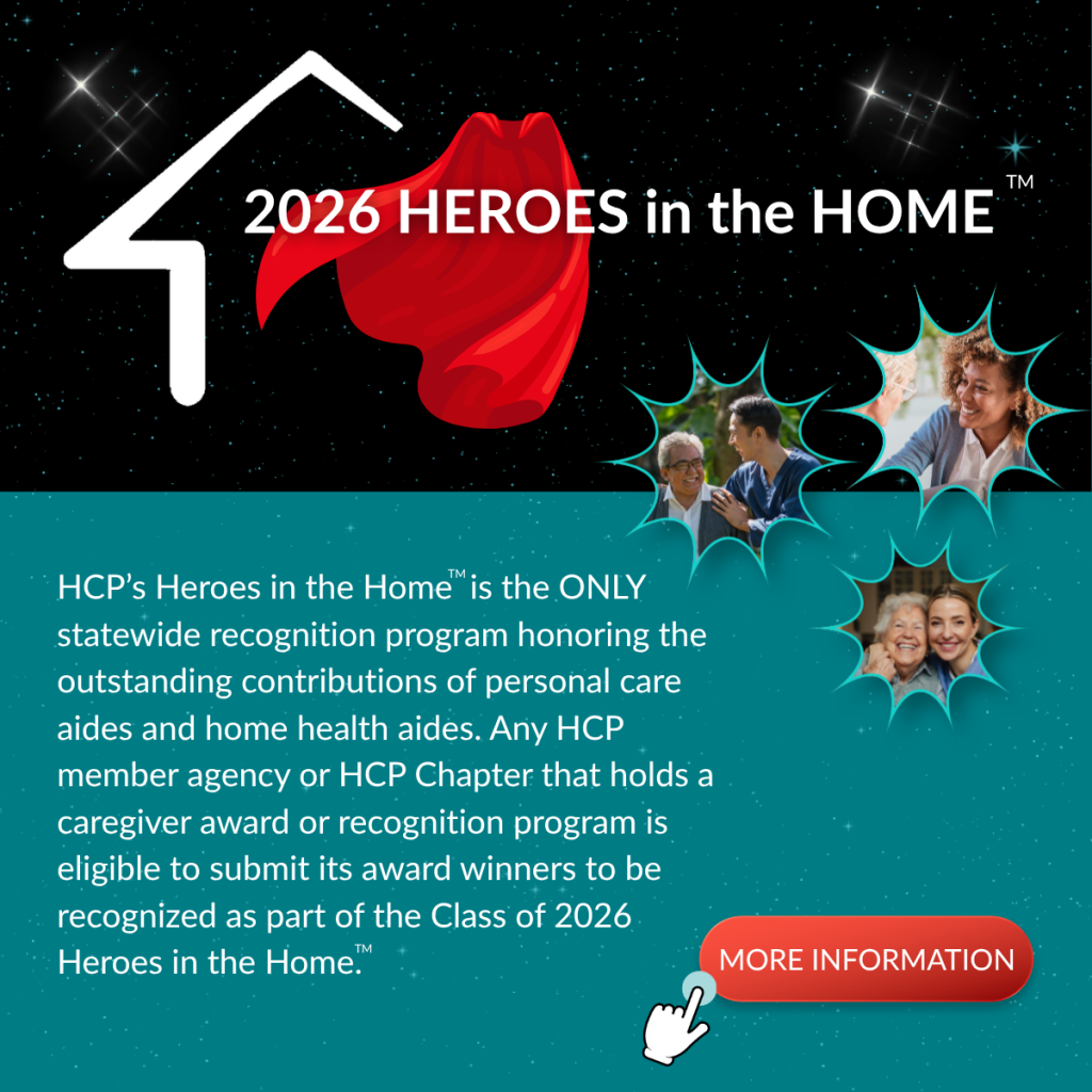 Heroes in the Home™ is a Statewide Caregiver Recognition Program that honors caregivers that have been identified by their agency as outstanding home care caregivers over the last year. These exemplary caregivers are acknowledged at the HCP Annual Awards Luncheon, and each receive a personalized Heroes in the Home™ certificate.